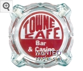 TCB-A1 Towne Cafe & Bar 3 11/16" Clear Glass Ashtray "Towne Cafe Bar & Casino, Ely, Nev." - Red on white |