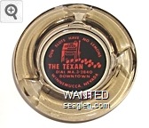 TEX-B1 Texan, The (Winnemucca) 4" Smoke Glass Ashtray "Our Slots Have No Lemons. The Texan, Dial MA. 3-2840, Downtown, Winnemucca, Nevada" - Red on black |