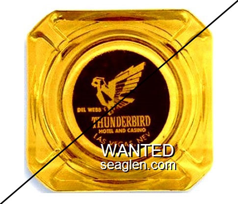 THU-15 Thunderbird Hotel & Casino 3 1/2" Amber Glass Ashtray "Del Webb's Thunderbird Hotel and Casino, Las Vegas, Nev." - Yellow on black |