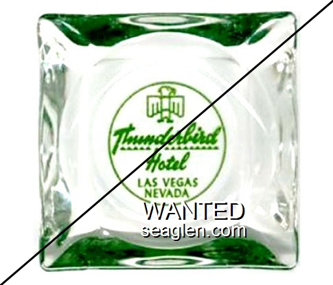 THU-H1 Thunderbird Hotel & Casino 3 1/2" Clear Glass Ashtray "Thunderbird Hotel, Las Vegas Nevada" - Green |