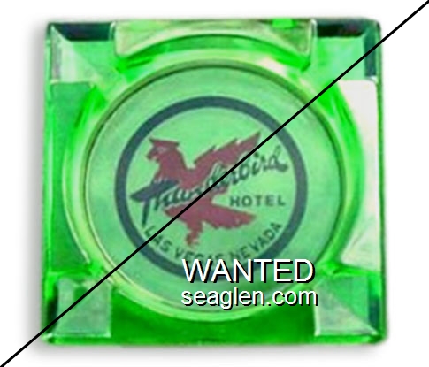 THU-K3 Thunderbird Hotel & Casino 3 1/2" Green Glass Ashtray "Thunderbird Hotel, Las Vegas nevada" - Red and black |