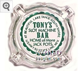 TNY-A1 Tony's Bar 3 11/16" Clear Glass Ashtray "At Beautiful Lake Tahoe - South Shore, Tony's Slot Machine Bar, Home of More Jack Pots, U.S. Hwy. 50 State Line, Nev." - Green |