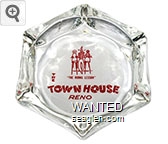 THE-A1 Town House, Elko 3 1/4" Clear Glass Ashtray "Ken's Town House, Elko, Nevada" - Red on white |
