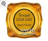 TON-04 Tonopah Club 3 7/16" Amber Glass Ashtray "Tonopah Club Cafe, Harold R. Hunter" - Blue on yellow |
