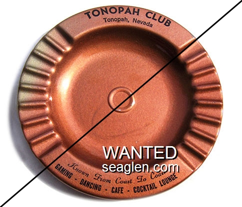 TON-D2 Tonopah Club ?" Copper Metal Ashtray "Tonopah Club, Tonopah, Nevada, Known From Coast To Coast, Gaming - Dancing - Cocktail Lounge" - Black |