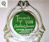 TON-E1 Tonopah Club 3 1/4" Clear Glass Ashtray "Tonopah Club, Cocktail Lounge, Gaming - Dancing, Tonopah, Nevada," - White on green |