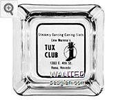 TUX-C1 Tux, The, Reno 4 1/4" Clear Glass Ashtray "Steakery - Dancing - Gaming - Slots, Lew Moreno's Tux Club, 1303 E. 4th St., Reno, Nevada" - Black |
