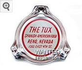 TUX-D1 Tux, The, Reno 3 1/4" Clear Glass Ashtray "The Tux, Spanish-American Food, Reno, Nevada, 1303 East 4th St." - Red on white |