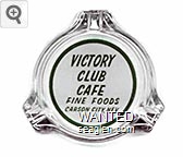 VIC-B1 Victory Club 3 3/8" Clear Glass Ashtray "Victory Club Cafe, Fine Foods, Carson City, Nev." - Green on white |