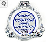 VIC-C1 Victory Club 3 3/8" Clear Glass Ashtray "Tommy's Victory Club, Gaming, Race Horse Keno, Carson City Nevada" - Blue on white |