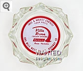 VLR-A1 Villa Roma 4" Clear Glass Ashtray "Ines & August Cortesi, Your Hosts, Villa Roma, Italian Dinners, Cocktails, Reno, Nevada, One Mile West On U.S. Highway 40" - Red on white |