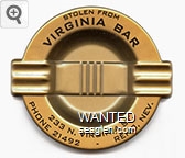 VRB-A2 Virginia Bar 4 7/8" Gold Metal Ashtray "Stolen From Virginia Bar, 233 N. Virginia St., Phone 21492 - Reno, Nev." - Black |