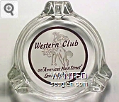 WES-20 Western Club 3 3/8" Clear Glass Ashtray "Western Club, on ''America's Main Street'' Lovelock, Nevada" - Brown on white |