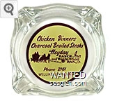 WWB-A1 Wagon Wheel Bar - Heyday Inn 3 7/16" Clear Glass Ashtray "Chicken Dinners, Charcoal Broiled Steaks, Heyday Ranch Inn and Wagon Wheel Bar, Phone 2161, Wellington, Nevada" - Brown on yellow |