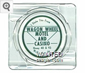 WWC-B2 Wagon Wheel Motel-Casino 4 1/4" Clear Glass Ashtray "Wagon Wheel, Wells Nevada, Gaming Lounge Cafe, Motel Hotel" - White on red |