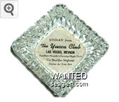 YUC-A1 Yucca Club 4 1/2" Clear Glass Ashtray "Stolen From The Yucca Club, Las Vegas, Nevada, Southern Nevada's Favorite Night Club, On Boulder Highway, Come As You Are" - Black on white |