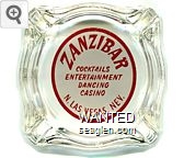 ZAN-A1 Zanzibar 3 7/16" Clear Glass Ashtray "Zanzibar, Cocktails, Entertainment, Dancing, Casino, N. Las Vegas, Nev." - Red on white |