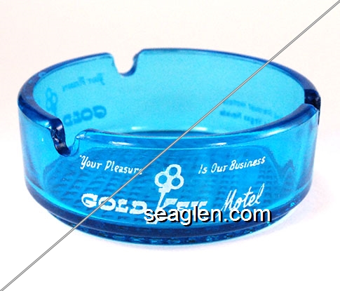 GKM-E2 Gold Key Motel 3 7/16" Blue Glass Ashtray |