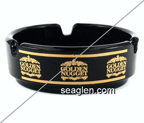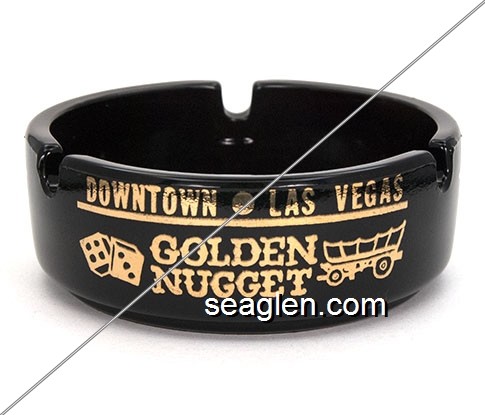 GNG-E5 Golden Nugget Gambling Hall 4 1/8" Black Porcelain Ashtray |