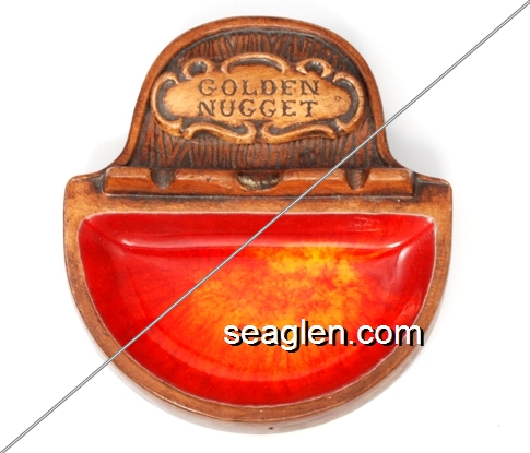 GNG-P1 Golden Nugget Gambling Hall 4 3/8 x 4 3/4" Brown Porcelain Ashtray |