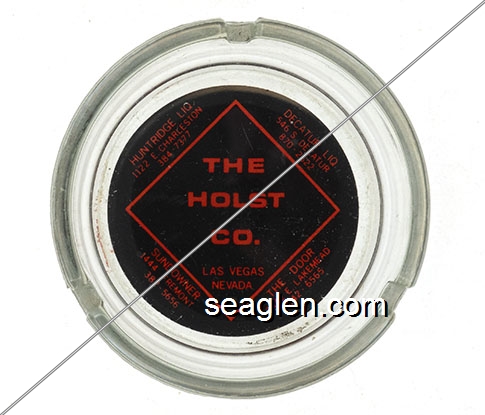 The Holst Co., Las Vegas, Nevada, Decatur Liq., 546 S. Decatur, 870-2522, The Door, 2442 E. Lakemead, 642-6565, Sundowner, 1444 Fremont, 382-5656, Huntridge Liq., 1122 E. Charleston, 384-7377 Glass Ashtray