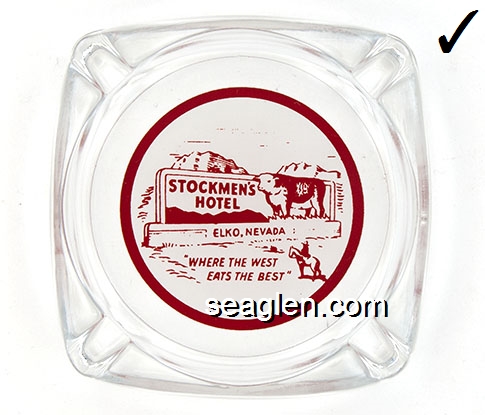 Stockmen's Hotel, Elko, Nevada, ''Where The West Eats The Best'' Glass Ashtray