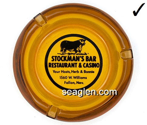 Stockman's Bar, Restaurant & Casino, Your Hosts, Herb & Bonnie, 1560 W. Williams, Fallon, Nev. Glass Ashtray
