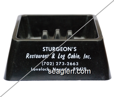 Sturgeon's Restaurant & Log Cabin Inc., (702) 273-2663, Lovelock, Nevada 89419 Plastic Ashtray