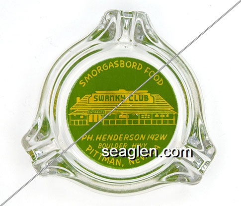 Smorgasbord Food, Swanky Club, PH. Henderson 142W, Boulder Hwy., Pittman, Nevada Glass Ashtray