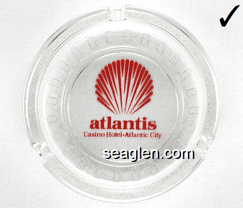 AAC-A1 Atlantis Casino Hotel Atlantic City, NJ 4 3/8" Clear Glass Ashtray Red imprint: Atlantis, Casino Hotel - Atlantic City |