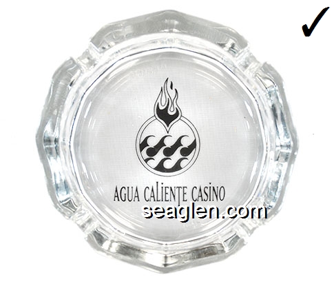 ACC-A1 Agua Caliente Casino Resort Spa Rancho Mirage, CA 4" Clear Glass Ashtray Black imprint: Agua Caliente Casino |