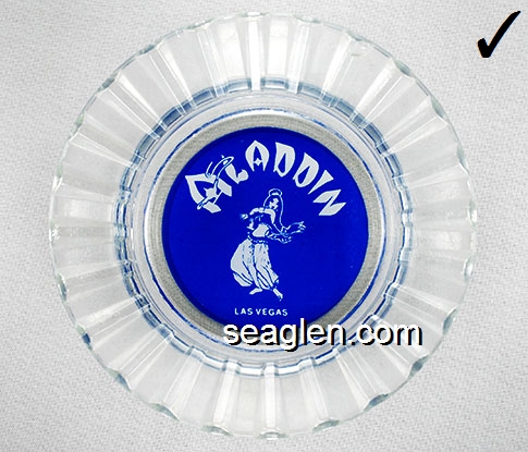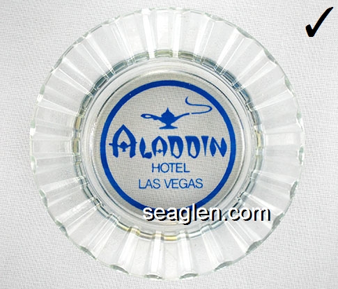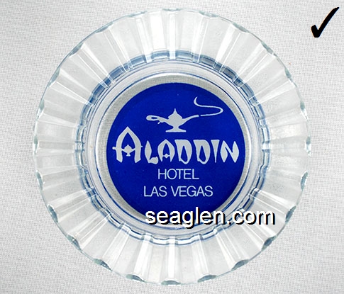 ALA-11 Aladdin Hotel-Casino Las Vegas, NV 4 1/2" Clear Glass Ashtray White on blue imprint: Aladdin Hotel, Las Vegas |