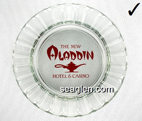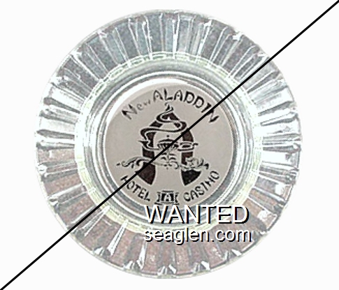ALA-T1 Aladdin Hotel-Casino Las Vegas, NV 4 1/2" Clear Glass Ashtray White imprint: New Aladdin, Hotel, Casino |