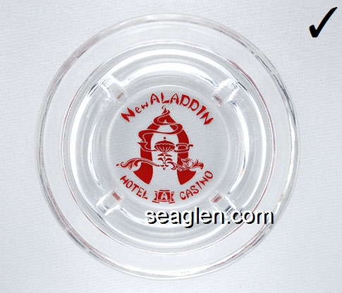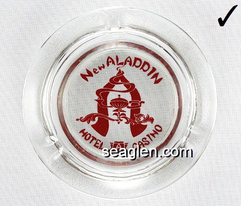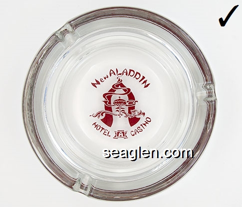 ALA-T3 Aladdin Hotel-Casino Las Vegas, NV 3 1/2" Clear Glass Ashtray Maroon imprint: New Aladdin, Hotel, Casino |