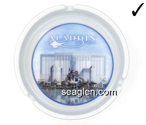 ALA-J2 Aladdin Hotel-Casino Las Vegas, NV 3 7/8" White Porcelain Ashtray Blue imprint: Aladdin, Las Vegas |