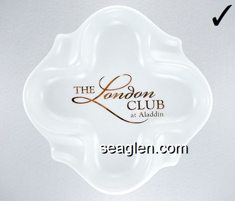 ALA-K3 Aladdin Hotel-Casino Las Vegas, NV 5 3/4" White Porcelain Ashtray Gold imprint: The London Club at Aladdin |