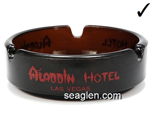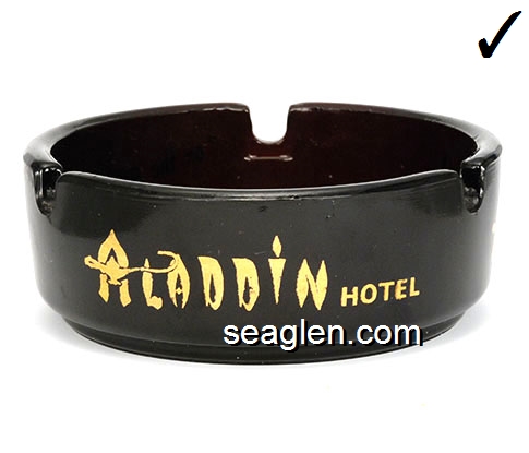 ALA-N1 Aladdin Hotel-Casino Las Vegas, NV 3 1/2" Brown Glass Ashtray Red imprint: Aladdin Hotel, Las Vegas |