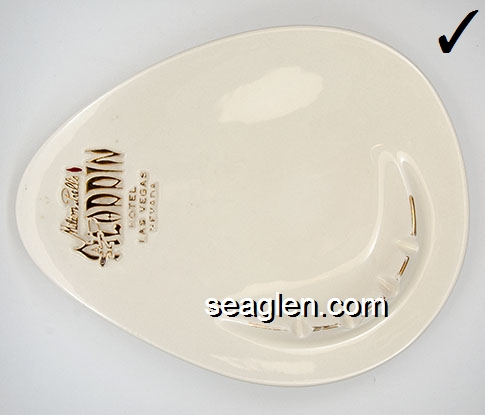 ALA-U1 Aladdin Hotel-Casino Las Vegas, NV 8 x 10" White Porcelain Ashtray Gold, raised imprint: Milton Prell's, Aladdin Hotel, Las Vegas, Nevada |