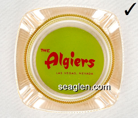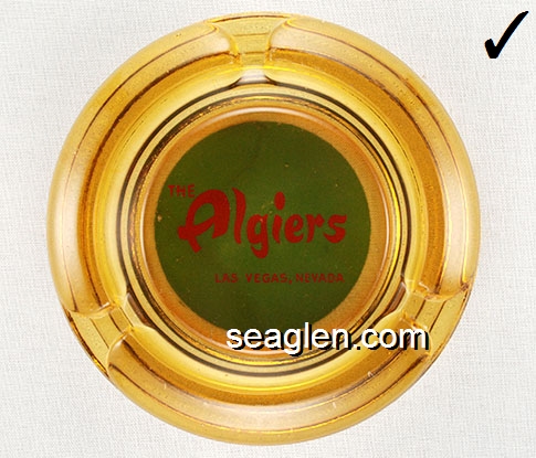 ALG-A1 Algiers Hotel Las Vegas, NV 4" Amber Glass Ashtray Red on green imprint: The Algiers, Las Vegas, Nevada |