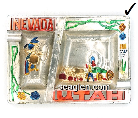 AOC-C1 A-1 Casino West Wendover, NV 3 5/8 x 5" Silver Metal Ashtray Stamped imprint: Nevada, A-1 Club, Wendover, State Line, ''Nevada or Bust'', Utah |