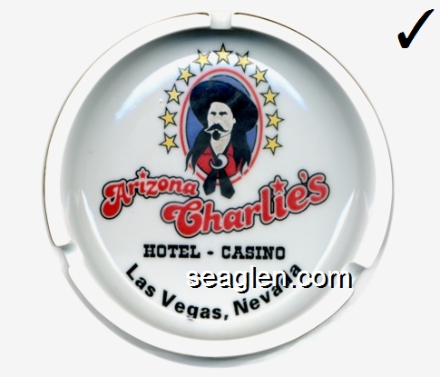 AZC-A1 Arizona Charlie's Hotel-Casino Las Vegas, NV 4 5/8" White Porcelain Ashtray Red and black imprint: Arizona Charlie's Hotel - Casino, Las Vegas, Nevada |