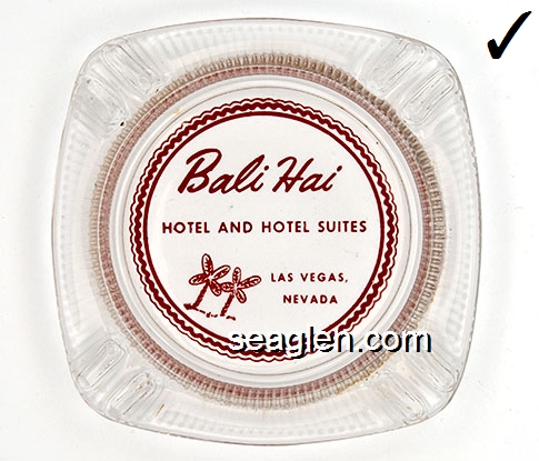 BAH-E1 Bali Hai Motel Las Vegas, NV 4 1/8" Clear Glass Ashtray Red on white imprint: Bali Hai, Hotel and Hotel Suites, Las Vegas, Nevada |