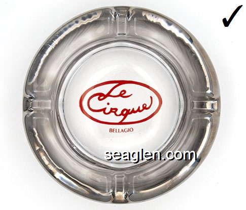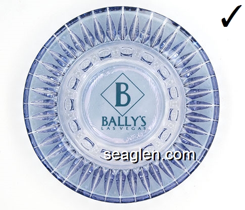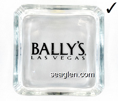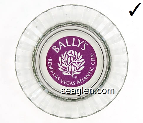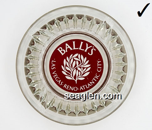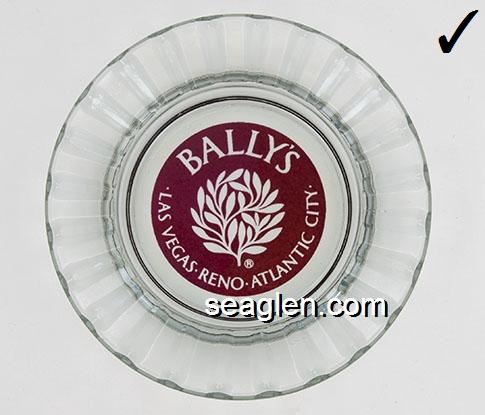 BAL-A1 Bally's Las Vegas Las Vegas, NV 4 1/2" Clear Glass Ashtray Maroon imprint: Bally's, Reno Las Vegas Atlantic City (Like BAL-04, except imprint) |