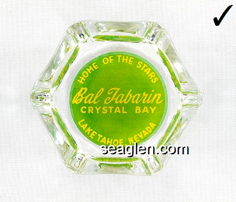 BAL-34 Bal Tabarin Crystal Bay, NV 3 1/4" Clear Glass Ashtray Yellow on green imprint: Home of the Stars, Bal Tabarin, Crystal Bay, Lake Tahoe, Nevada |