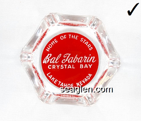 BAL-35 Bal Tabarin Crystal Bay, NV 3 1/4" Clear Glass Ashtray White on red imprint: Home of the Stars, Bal Tabarin, Crystal Bay, Lake Tahoe, Nevada |