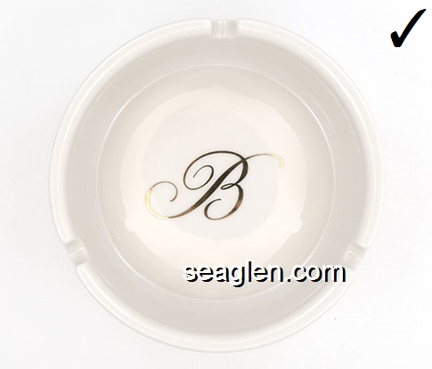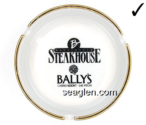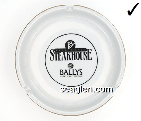 BAL-B2 Bally's Las Vegas Las Vegas, NV 4 9/16" White Ceramic Ashtray Black imprint: Barrymore's Steakhouse, Bally's, Casino Resort Las Vegas |