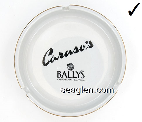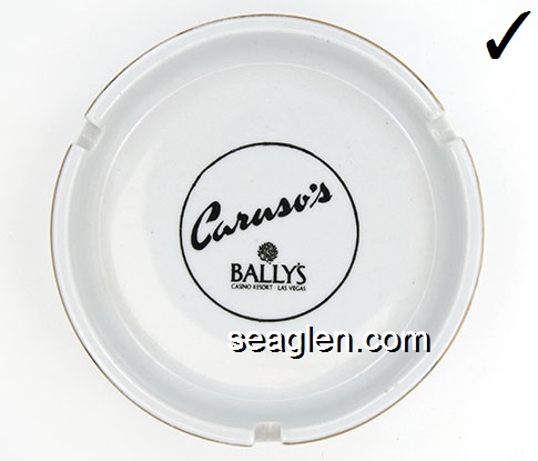 BAL-B6 Bally's Las Vegas Las Vegas, NV 4 9/16" White Ceramic Ashtray Black imprint: Caruso's |
