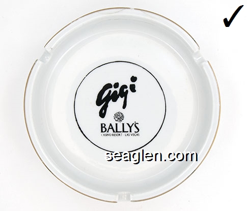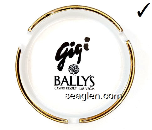 BAL-B7 Bally's Las Vegas Las Vegas, NV 4 5/8" White Ceramic Ashtray Black imprint: Gigi, Bally's, Casino Resort - Las Vegas |