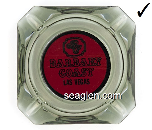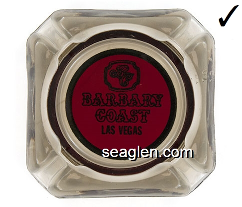 BAR-01 Barbary Coast Las Vegas, NV 3 5/8" Smoke Glass Ashtray Black on red imprint: BC, Barbary Coast, Las Vegas |