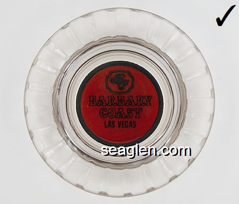 BAR-04 Barbary Coast Las Vegas, NV 4 1/2" Clear Glass Ashtray Black on red imprint: Barbary Coast, Las Vegas |